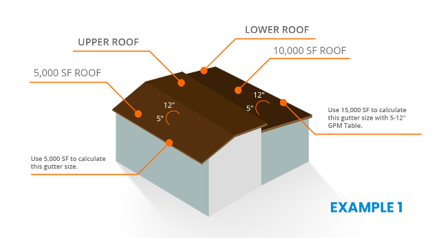 Knowing how to size gutters and downspouts means finding out how much water the roof will be able to drain during an intense downpour. The amount is usually the product of the drainage area, roof pitch factor, and the intensity of rain. Find out the 5-minute intensity and use it to divide the roof watershed per hour, measured in inches.