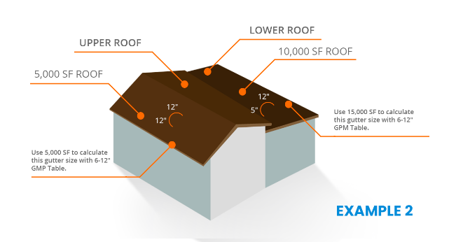 econd story is 4,500 sq. ft., the area for the first story roof will be a sum of the two because the top roof drains on the lower one.
